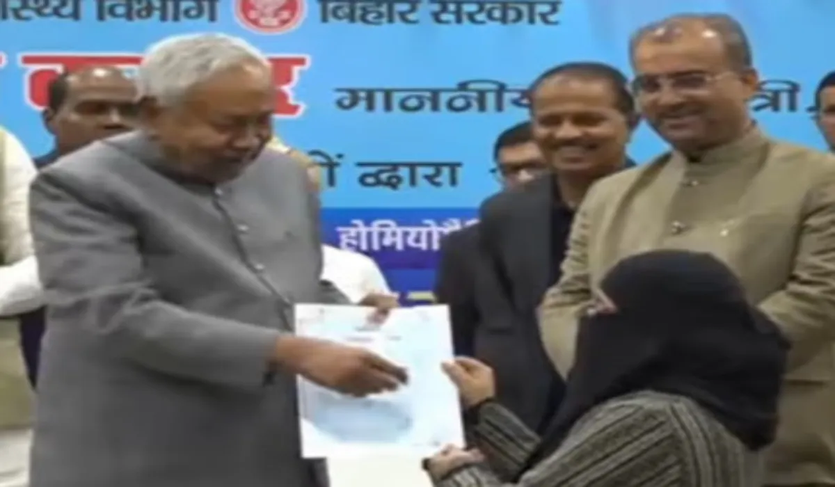 बता दें कि नीतीश कुमार से जुड़ा एक वीडियो भी सोशल मीडिया पर तेजी से वायरल हो रहा है। वीडियो में मुख्यमंत्री नीतीश कुमार कार्यक्रम के दौरान मंच पर उपमुख्यमंत्री सम्राट चौधरी और स्वास्थ्य मंत्री मंगल पांडे के साथ दिख रहे हैं। बता दें कि यह विवाद एक कार्यक्रम के दौरान हुआ, जहां मुख्यमंत्री नीतीश कुमार ने मुख्यमंत्री सचिवालय के संवाद हॉल में 1,283 आयुष डॉक्टरों (आयुर्वेदिक, होम्योपैथिक और यूनानी) को नियुक्ति पत्र बांटे।