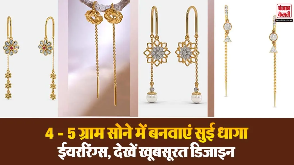 Gold Sui Dhaga Designs 2026: इन दिनों गोल्ड के प्राइस काफी तेजी से बढ़ रहे हैं, ऐसे में महिलाएं गोल्ड में निवेश करना पसंद करती हैं। गोल्ड में इंवेस्ट करने के साथ-साथ स्टाइलिश लुक भी कैरी कर सकते हैं। आज के समय में गोल्ड इयररिंग्स महिलाओं की ज्वेलरी का सबसे जरूरी हिस्सा है शादी हो या पार्टी महिलाएं गोल्ड की ज्वेलरी कैरी करना पसंद करती हैं। ऐसे में आप खूबसूरत लुक के लिए सुई-धागा ईयरिरंग्स कैरी कर सकते हैं। 4- 5 ग्राम सोने में आप ये सुई-धागा ईयररिंग्स बनवा सकते हैं. आइए देखते हैं लेटेस्ट डिजाइन।