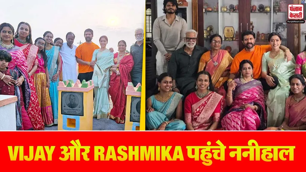 रश्मिका को लेकर विजय अपने नाना-नानी के घर पहुंचे. कपल की फैमिली के साथ फोटोज अब सोशल मीडिया पर वायरल हो रही हैं. सोशल मीडिया पर वायरल फोटोज में विजय अपनी नानी-नाना की स्मृति स्थलों पर सिर झुकाते नजर आ रहे हैं. एक्टर ने कैजुअल ऑरेंज टी-शर्ट और पैंट पहनी थी, जबकि रश्मिका ने ब्लू सिल्क साड़ी में अपने जलवे बिखेरे. दोनों ने फैमिली के साथ पोज दिए, इस दौरान विजय की मां बहू रश्मिका के बगल में खड़ी रहीं.