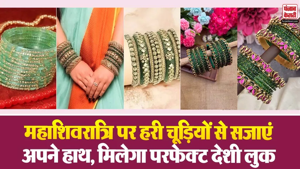 Green Bangle Designs for Mahashivratri: सुंदर दिखने के लिए महिलाएं कई सारी एक्सेसरीज को स्टाइल करती हैं, लेकिन हाथों को सजाना भूल जाती हैं। इस बार महाशिवरात्रि के मौके पर आप हरे रंग की चूड़ियां पहनना न भूलें। हरा रंग महिलाओं के लिए खास होता है। साथ ही हाथों में पहनने के बाद ये अच्छा लगता है। इस कलर की चूड़ियां आपके हाथों में काफी अच्छी लगेंगी। आइए बताते हैं किस तरह के डिजाइंस को आप ट्राई कर सकती हैं।