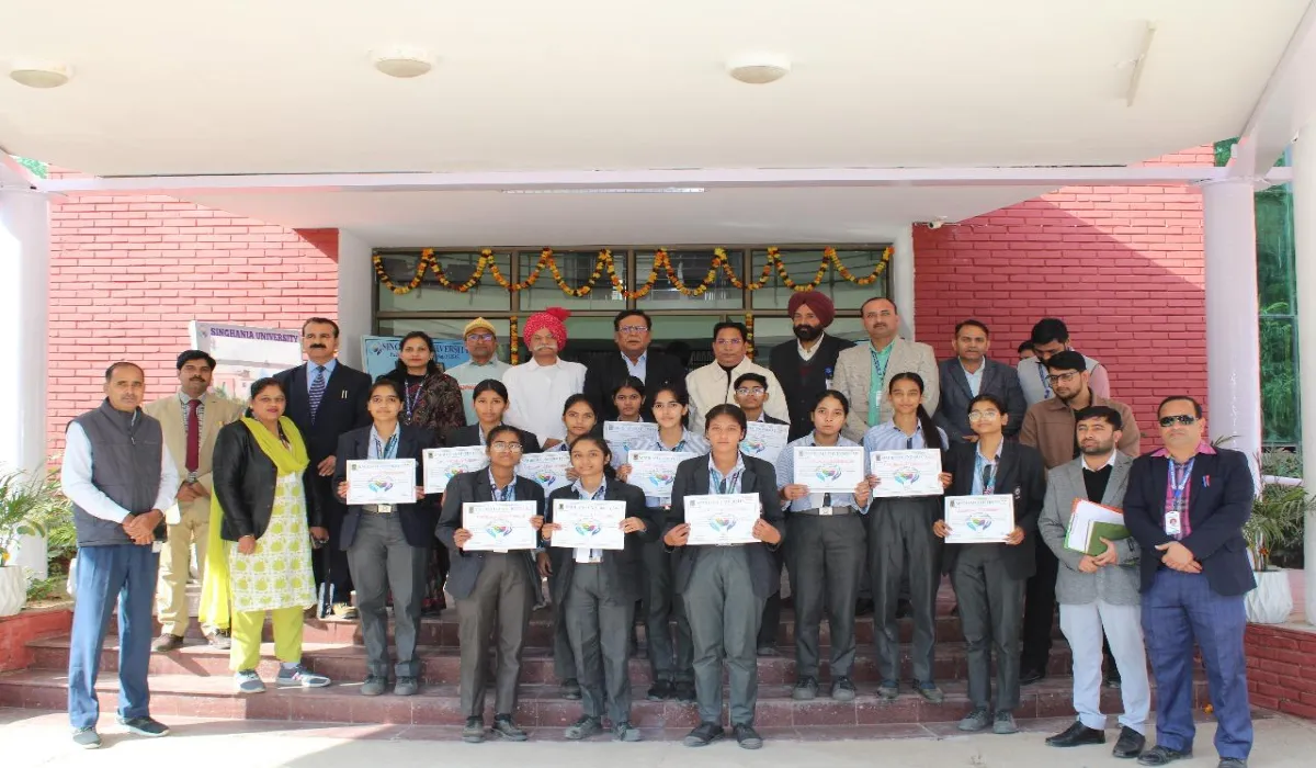 Samvidhan Divas Samaroh: सिंघानिया विश्वविद्यालय के स्कूल ऑफ लॉ द्वारा 26 नवंबर को संविधान दिवस बड़े हर्ष एवं उत्साह के साथ मनाया गया। कार्यक्रम के औपचारिक प्रारंभ से पहले एडमिन ब्लॉक में लेखन प्रतियोगिता का आयोजन किया गया, जिसमें विभिन्न स्कूलों से आये हुए विद्यार्थियों ने भारतीय संविधान के महत्व और उसकी मूल भावना पर अपने विचार व्यक्त किए। मुख्य कार्यक्रम का शुभारंभ अतिथियों के द्वारा वृक्षारोपण के साथ हुआ।