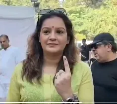 शिवसेना यूबीटी नेता प्रियंका चतुर्वेदी ने BMC चुनाव के लिए गोरेगांव पश्चिम के शहीद स्मृति मैदान में वोट डाला।