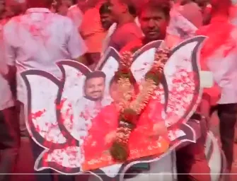 पुणे में भाजपा कार्यकर्ता जश्न मना रहे हैं, यहां बीजेपी उम्मीदवार साई थोपटे और गणेश घोष जीत गए हैं।