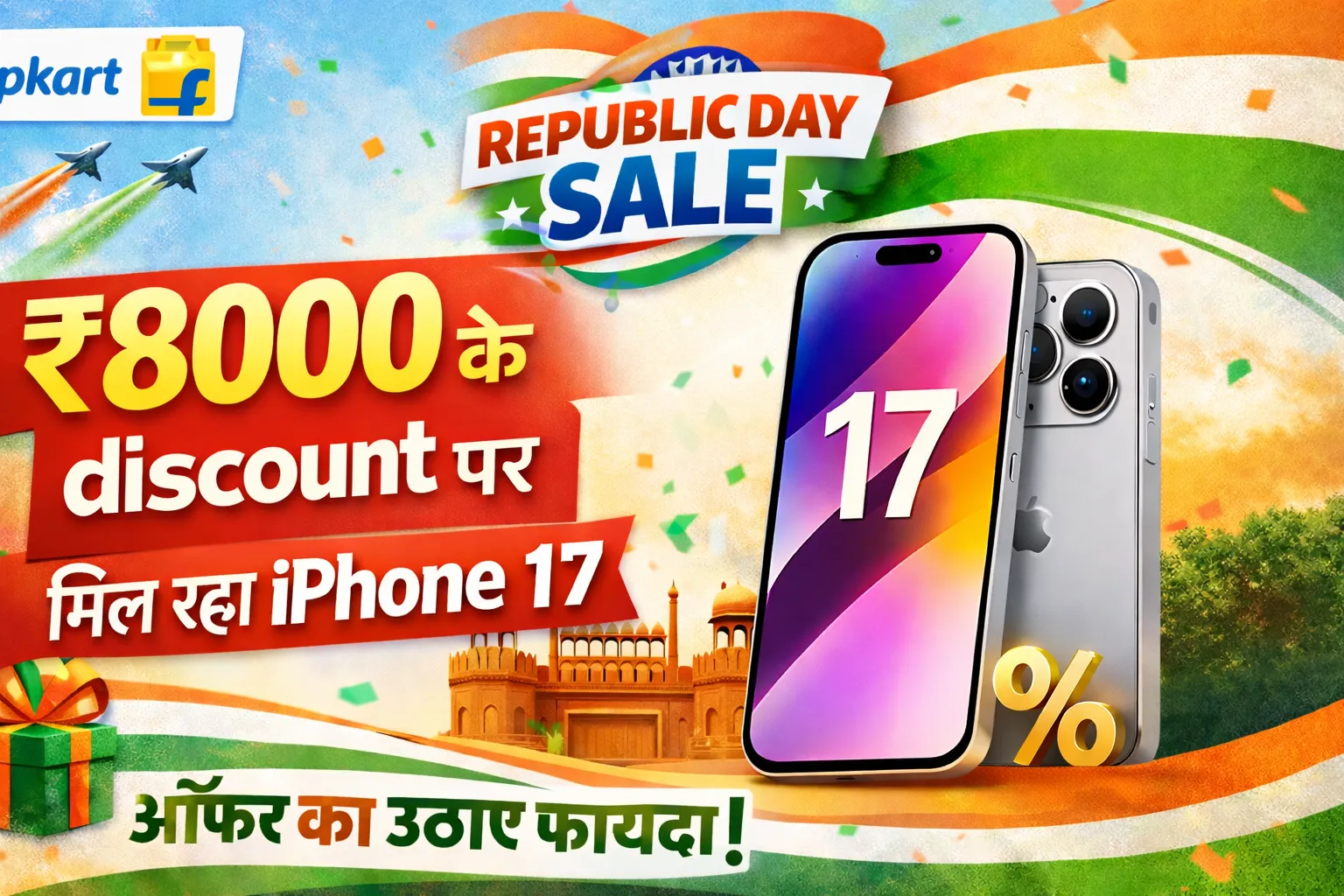 Flipkart iphone 17 Price Drop: iPhone के शौक रखने वालों के लिए बड़ी खबर सामने आई है। दरअसल उनके लिए Flipkart की आने वाली रिपब्लिक डे सेल बेहद फायदेमंद साबित हो सकती है। 17 जनवरी से शुरू हो रही इस सेल से पहले ही खबरें सामने आ रही हैं कि iPhone 17 पर जबरदस्त छूट मिलने वाली है। माना जा रहा है कि iPhone 17 (256GB वेरिएंट) की कीमत घटकर करीब 74,900 रुपये तक आ सकती है।