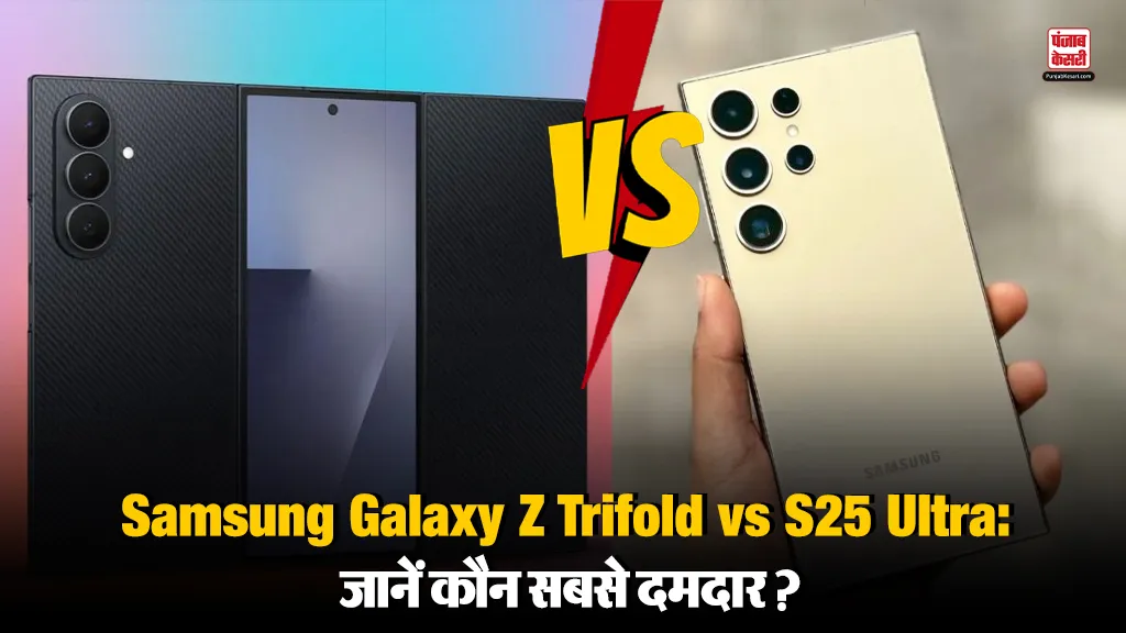 Samsung Galaxy Z Trifold vs Galaxy S25 Ultra: सैमसंग ने इस साल स्मार्टफोन मार्केट में बड़ा धमाका किया है। एक तरफ कंपनी ने दुनिया का पहला तीन बार मुड़ने वाला स्मार्टफोन Samsung Galaxy Z Trifold लॉन्च किया है, वहीं दूसरी तरफ उसका फ्लैगशिप मॉडल Galaxy S25 Ultra भी चर्चा में है। दोनों फोन अलग-अलग कैटेगरी को टारगेट करते हैं। एक फ्यूचरिस्टिक फोल्डेबल और दूसरा एक पॉवरफुल प्रीमियम फ्लैगशिप। ऐसे में यहां जानते हैं दोनों के फीचर, कैमरा, डिस्प्ले, बैटरी और कीमत के बारें में कौन सबसे बेस्ट है।