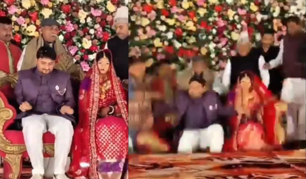 In UP’s Ballia, a wedding reception stage collapsed immediately after BJP district president and other senior leaders of the party got on to the stage to bless the newly wed. pic.twitter.com/4TzJywzofa