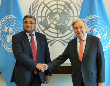 विदेश मंत्रालय ने सोशल मीडिया प्लेटफॉर्म एक्स पर मुलाकात की तस्वीर साझा कर लिखा, “सचिव (पश्चिम) सिबी जॉर्ज ने संयुक्त राष्ट्र के महासचिव एंटोनियो गुटेरेस से मुलाकात की। सचिव (पश्चिम) ने बहुपक्षवाद के लिए भारत की मजबूत प्रतिबद्धता पर जोर दिया। दोनों ने यूएन रिफॉर्म्स और ग्लोबल साउथ को ज्यादा आवाज देने पर अपने विचार शेयर किए, जिसका भारत ने इंडिया-यूएन डेवलपमेंट पार्टनरशिप फंड जैसे पहलों के जरिए लगातार समर्थन किया है।”